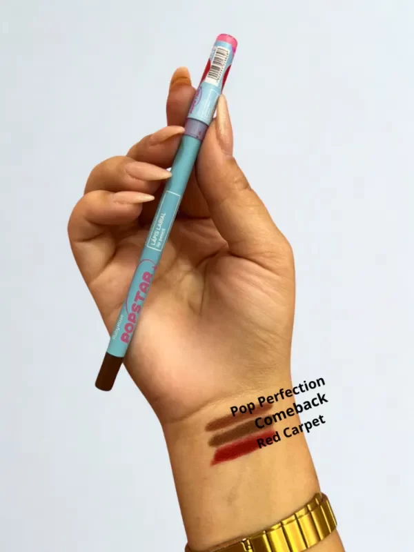 El lápiz labial Pop Star es el aliado perfecto para realzar tus labios con practicidad y estilo. Disponible en 3 colores versátiles y súper pigmentados, combina con diversos tonos de labiales y estilos de maquillaje.